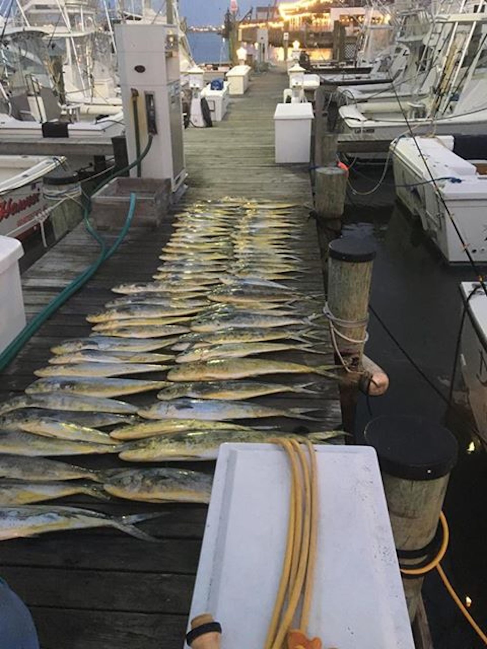 Yesterday the crew of Distraction with Captain Aaron Lifson.  Aaron, Dave Schulte, jesse constantino, sam niccollete, jon “hoss” bobby spivey had a great day in the Washington canyon putting a load of mahi on the dock and adding some blackfin tuna as well.