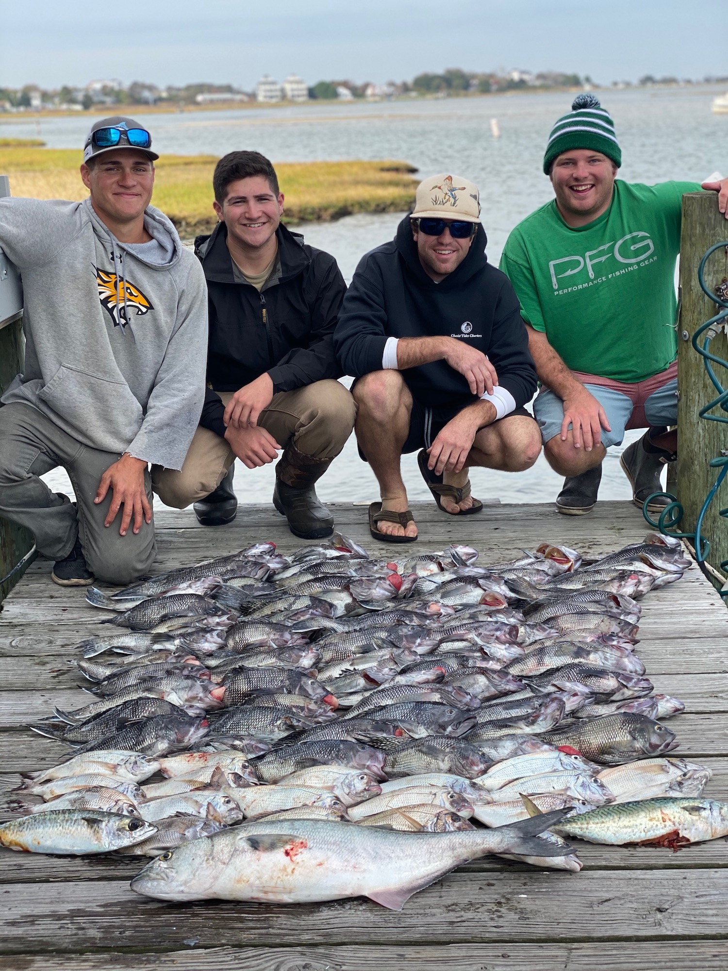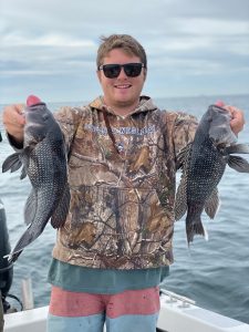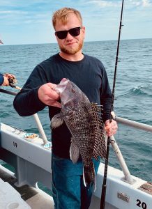 Captain Chase Eberle of Chasin’ Tides Charters put his crew on some good fishing today putting them on some chopper bluefish and a load of sea bass.