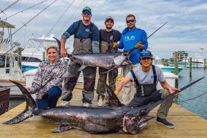 The swordfish bite has been reely good over the past month or so and now that the other billfish have left the area more boats are targeting swordfish during the daytime trying to get some tasty steaks in the freezer.  I was invited by Captain Austin Ensor and the #gang on Primary Search to join them on an overnighter, but couldn’t make it because of some obligations.  Now that I get their report I’m bummed that I missed out.  Captain Austin and crew put two very nice swordfish on deck on an overnight trip last night into today.