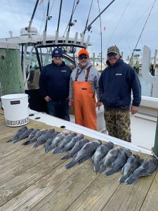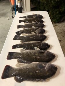 Matt Shoup from Fenwick Tackle and his buddy Jul caught a limit of tautog in the back bay today using green crabs and sand fleas.