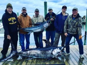 Captain Mark Hoos has had a busy season on board the MARLI and it continues late into November this year. Today Captain Mark put his crew on two beautiful swordfish with one jumbo weighing in at 292 pounds.