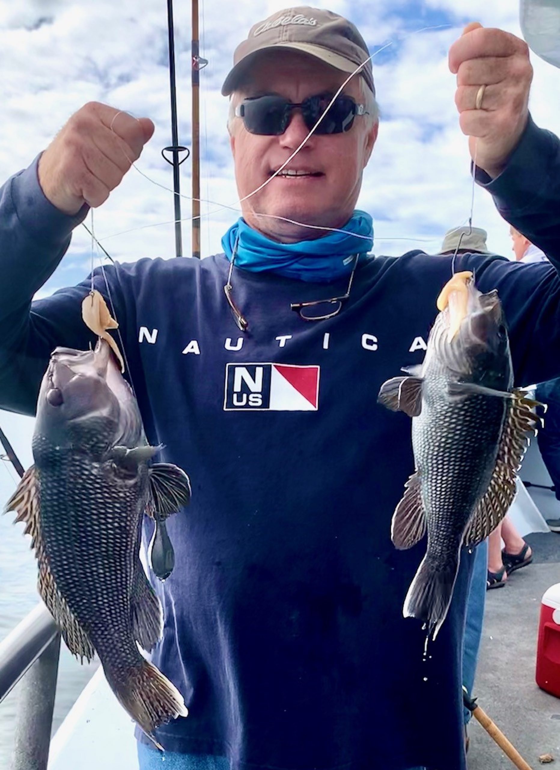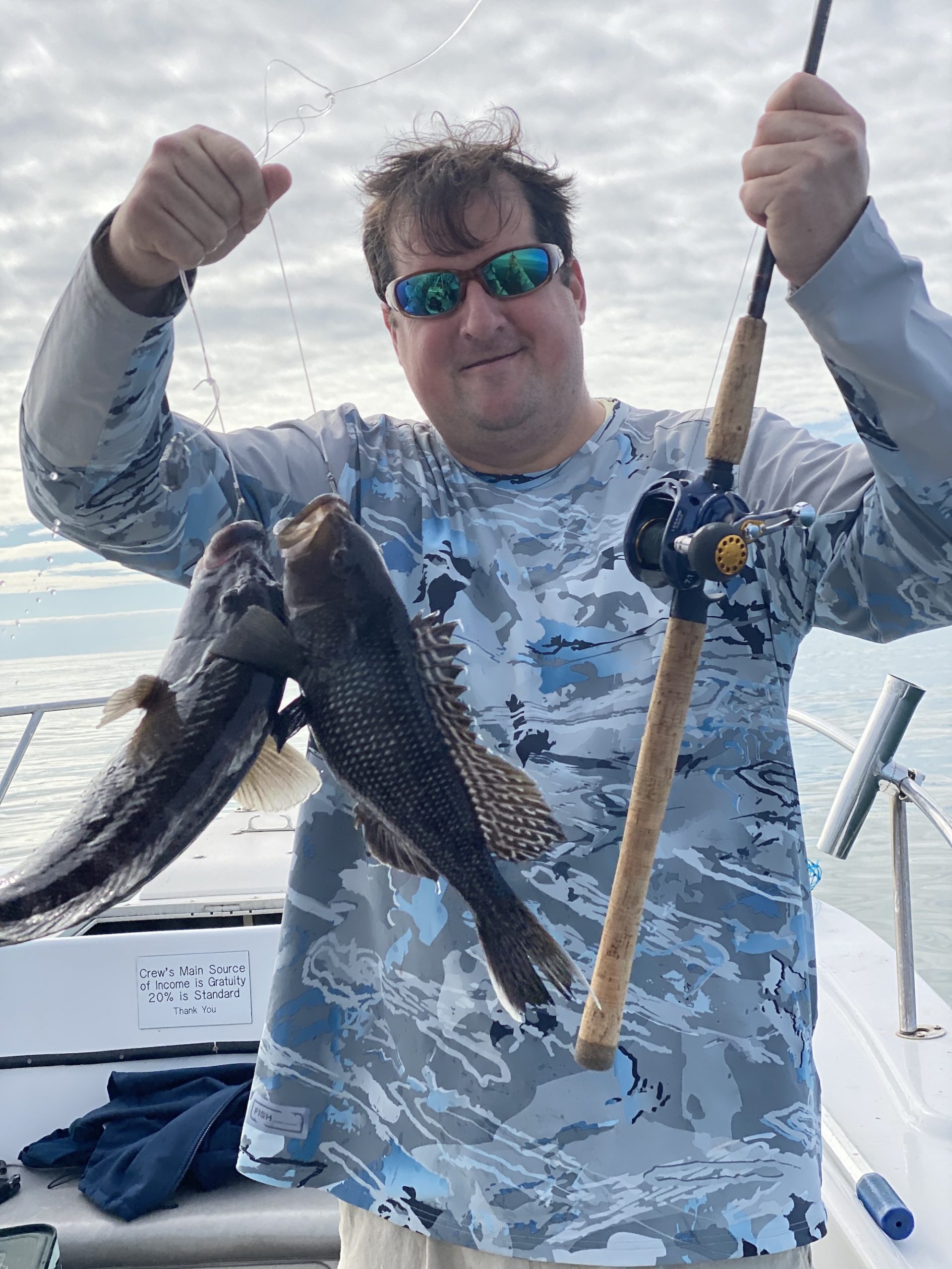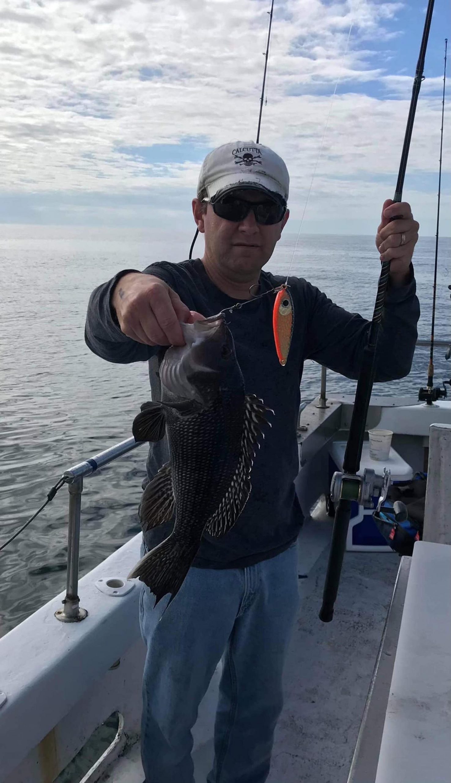 Bottom fishing over ocean structure has been good lately and it’s reely enjoyable on flat calm days like today. Captain Chase Eberle of Chasin’ Tides Charters had a nice day for his crew today with a bunch of sea bass and some nice tautog.