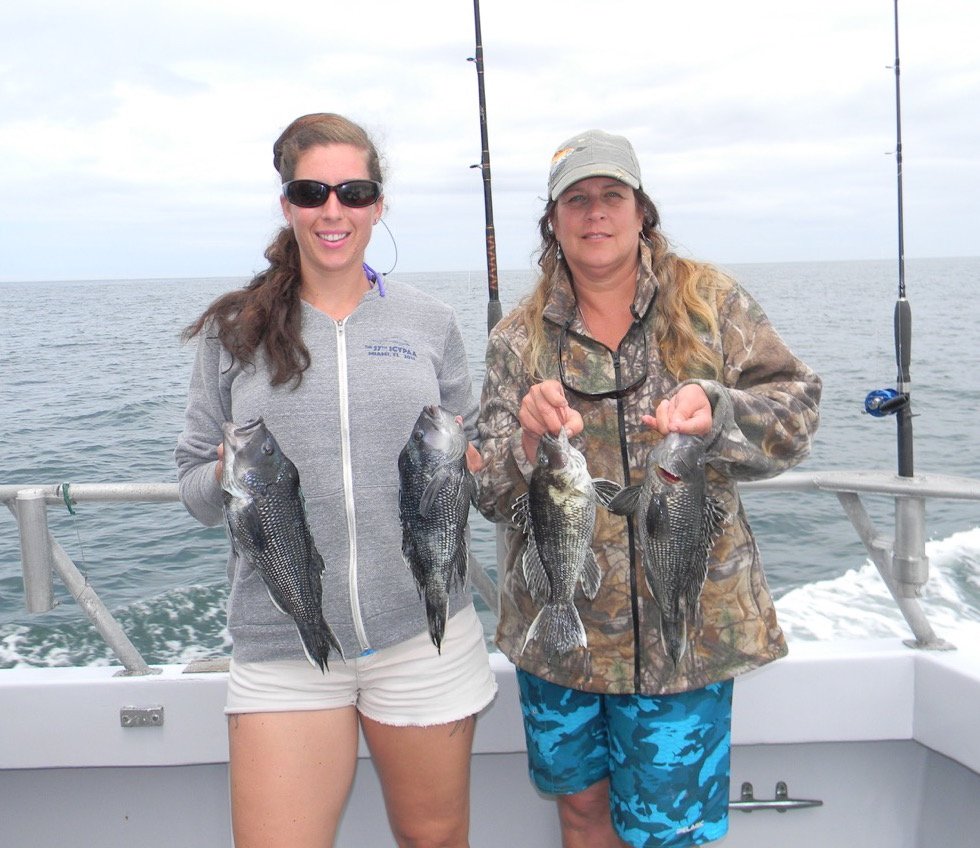 Captain Monty Hawkins on the party boat Morning Star out of The Ocean City Fishing Center is reporting fair to good sea bass fishing on all of his day trips. Here Julie Maugans from Tawneytown and her daughter, Ashton Hemphill from Westminster show a “skillet’s worth of tasty sea bass”. Captain Monty says these girls outfished “Hurricane Murray” in a bad way and caught their fish over a patch of MD’s temperate coral reef on clam.