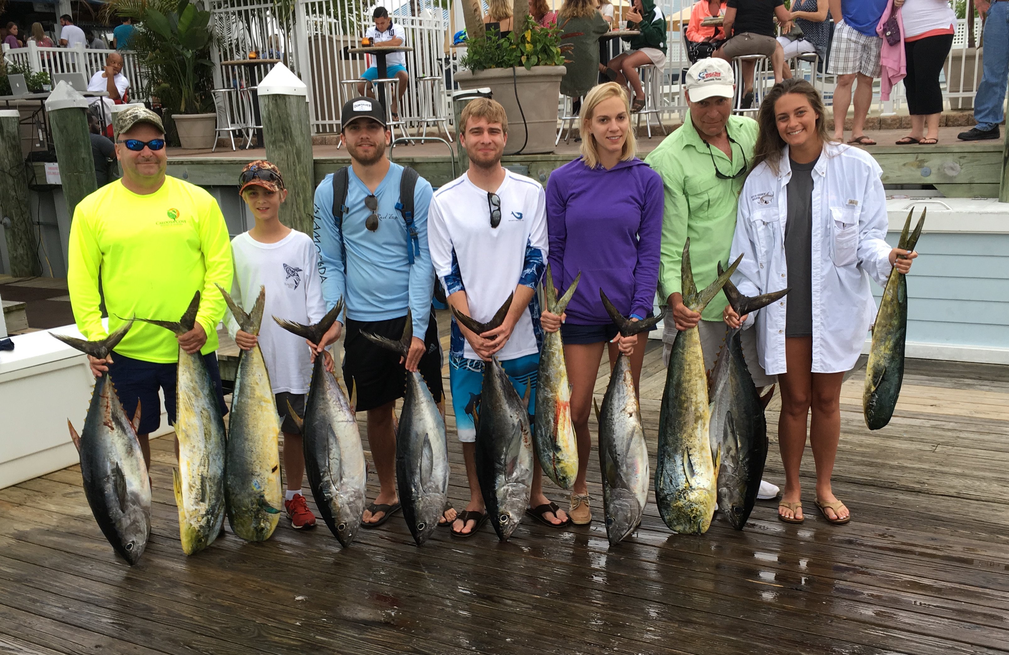 The Boss Hogg with Captain Brian Porter fishing out of Sunset Marina had a nice day in the canyons yesterday. The crew had six nice yellowfin tuna and five really nice gaffer mahi in the box after pulling ballyhoo in between the Washington and Norfolk Canyons.