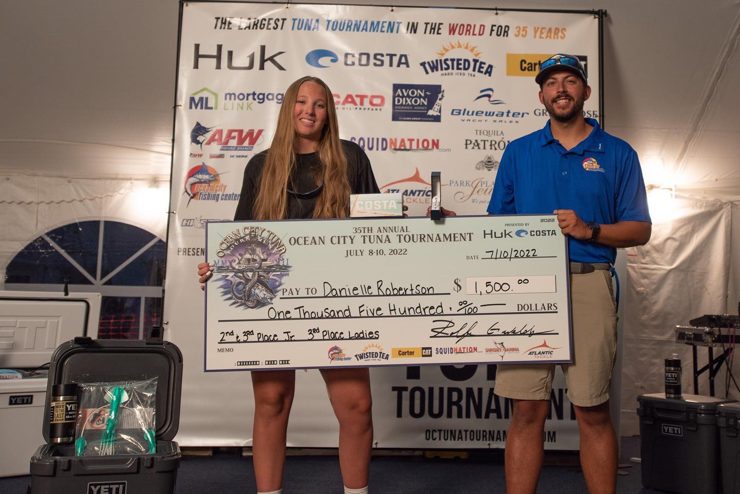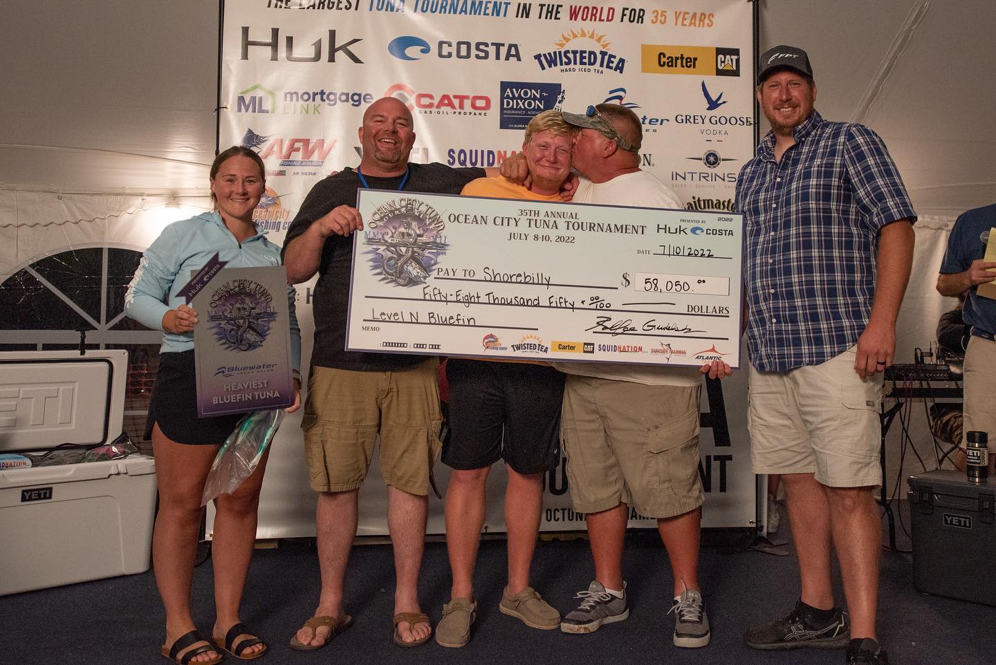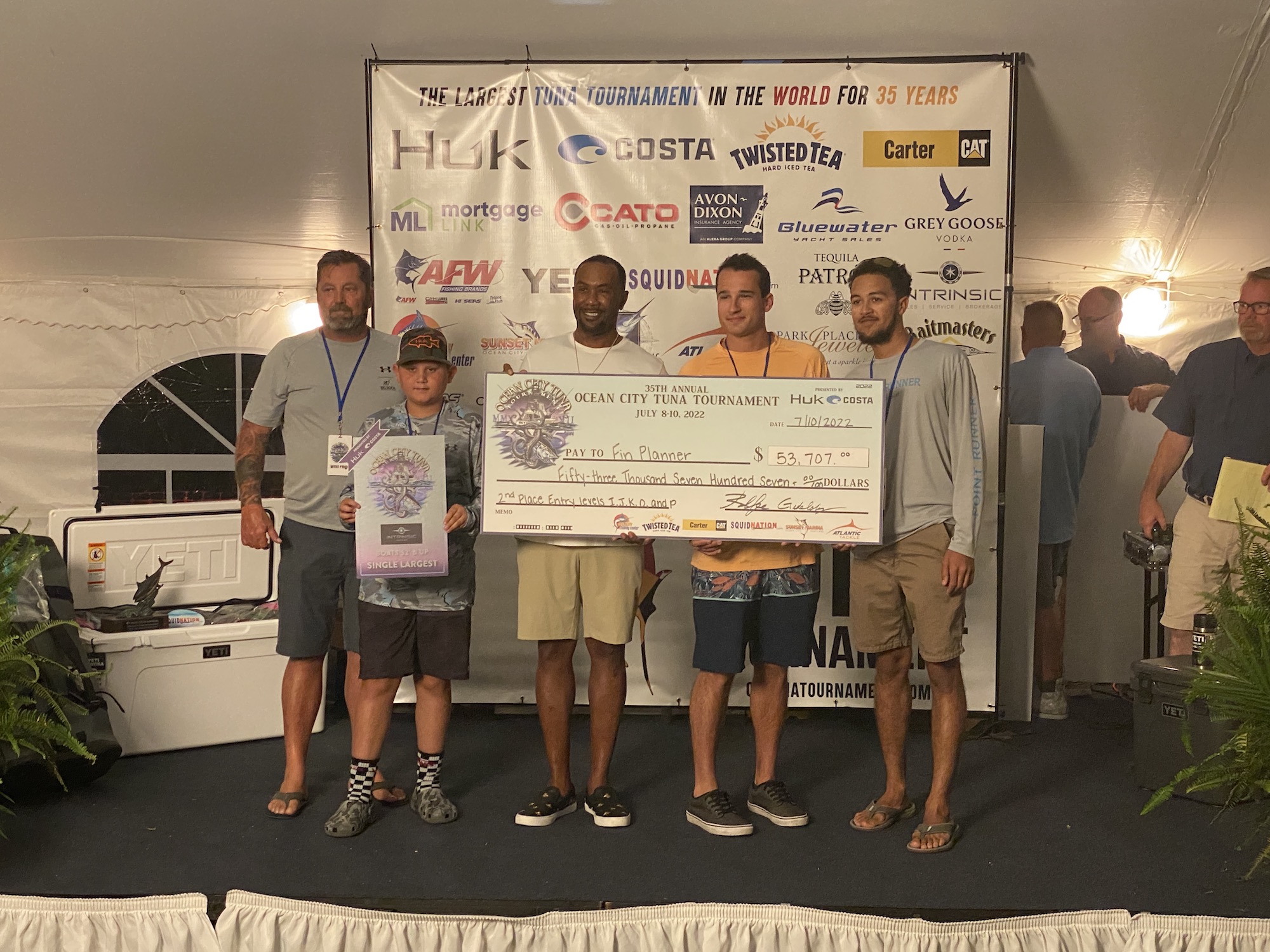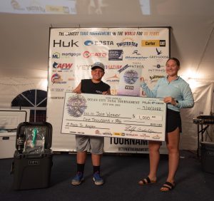 I just got back from the awards banquet for the 35th Annual Ocean City Tuna Tournament and there was A LOT of money handed out! This was an awesome year for the tuna tournament with multiple bigeye tuna over 200 pounds weighed, a record purse of over $1.1 Million and a record fish over 275 pounds. My good friend “Coconut” Dave Hedges was awarded the Bob Gowar Award for his service to the fishing community over the past several years and his commitment to the Tuna Tournament being there since it’s inception 35 years ago! Fish puller Mike Peete hoisted over 12,000 pounds of fish over the weekend (Brian Tinkler did hoist a 50 pound yellowfin) and a great time was had by…..most. Congratulations to all of the winners and to the Ocean City Tuna Tournament on an awesome event. Here’s who won what!