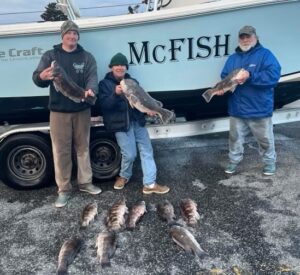 Scott Rinker, Ted Proseus, Tom McDonald and Tommy McDonald caught an almost 3 man limit of tautog on their first trip of the year with the largest weighing 10.3 pounds that was caught by Ted Proseus.’