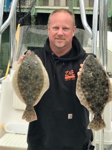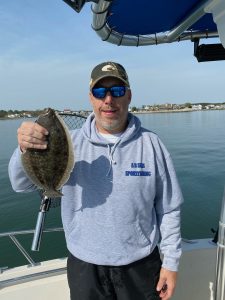 Paul Ropp caught his first flounder of the season while fishing the Thorofare with the Fish in OC Deadly Double in chartreuse.