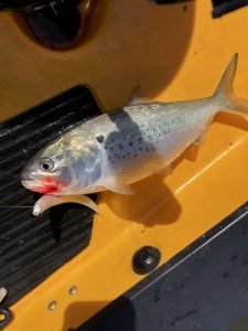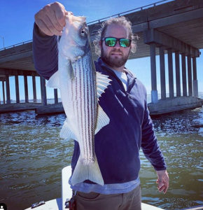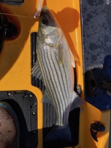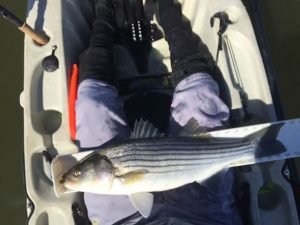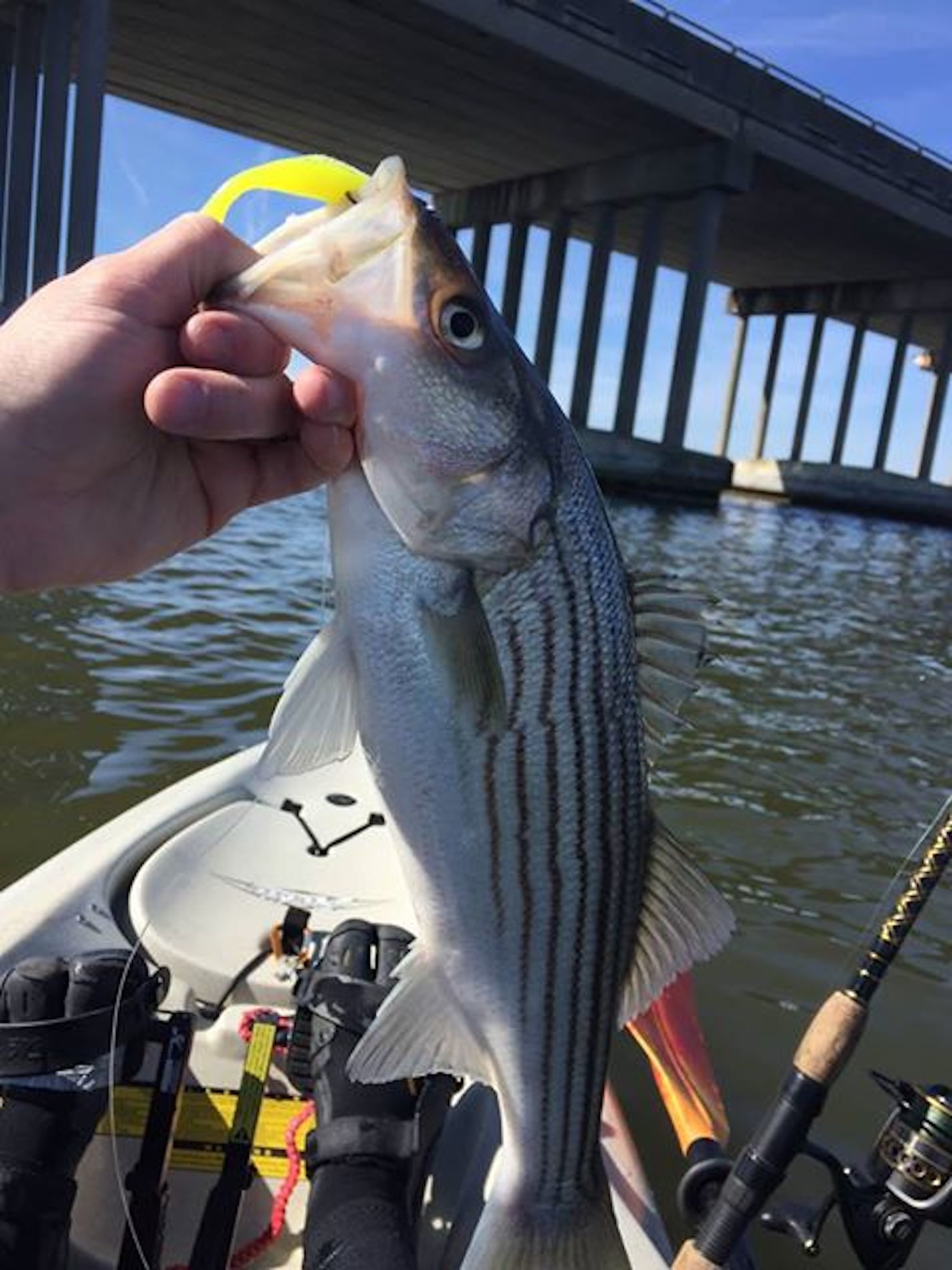 Ryan Willis fished his kayak and had some good luck on Roy Rigs and shad baits in a 3 hour trip. Ryan caught and released 15 rockfish up to as big as 24″.