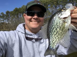 I couldn’t pass up the nice weather today either, but because the Fish in OC Carolina Skiff is at PT’s Marine I had to be happy with hitting my freshwater spot for some fishing. I had a great time catching and releasing some nice crappie and a couple of bigmouth bass on live minnows. I was all alone so I had to jump into the selfie game too.