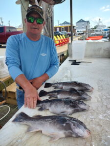 Captain Dave Caffrey of On the Run Charters had a nice afternoon for his charter putting him on four keeper tautog that will be released to Lake Crisco.