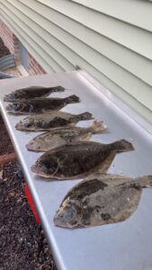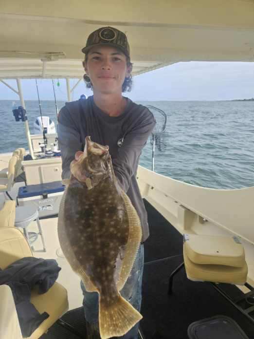Caleb Powell and friend used Deadly Double’s baited with orange Gulp to land six keeper flounder yesterday morning.