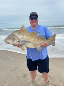 Officer Mike Dzurnak fished the Assateague Surf today and landed this very nice 31″ black drum on a sand flea / Fishbites combo on a fish finder rig.