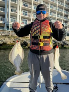 Tyler MacPherson was fishing with Mason today and they had a great time catching flounder in the East Channel.  Tyler had 8 throwback flounder using Deadly Tackle Deadly Doubles and Mason had 7 himself.  Tyler even had a true “double” with two fish on the same rig at the same time.