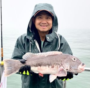 We didn’t have the nicest weather conditions today with fog, rain and a little wind, but it was still doable in the ocean and warmer than average temperatures made it not so bad. We’ll take it while we can get it because few and far between fishing days are on the way.