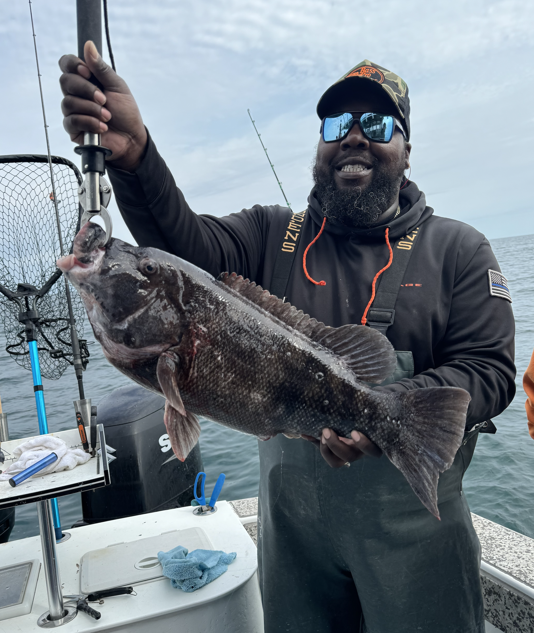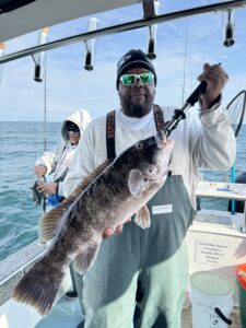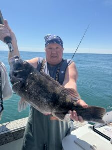 Captain Chase Eberle of Chasin’ Tides Charters had a nice day on the ocean today with a bunch of nice tautog for his anglers. Several eating sized fish ended up in the fish box and some double digit bruisers up to 14.5 pounds were caught and safely released.