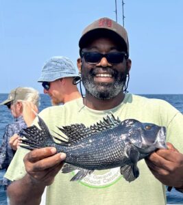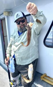 Captain Monty Hawkins of the Morning Star enjoyed smooth sailing today and some real nice sea bass.
