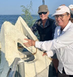 Next we loaded a pair of pyramids on the ramp and made bamboo fast to them as well before OCReef volunteer extraordinaire, Sandra, and friend Doreen, sent those to the bottom also.