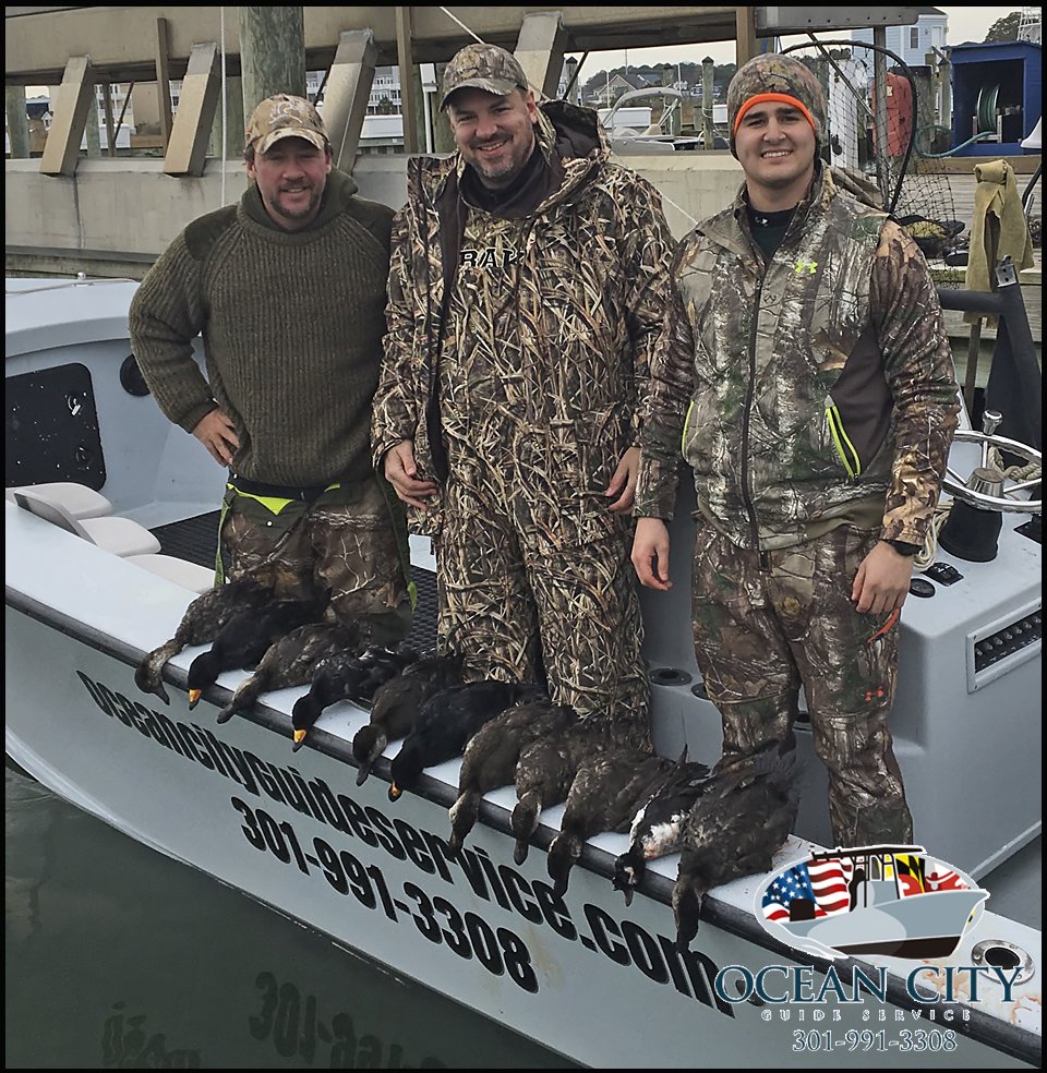 There wasn’t too much fishing going on today, but we did have three of the Fish in OC inshore charter fleet on the water. Captain Jeff Coats of Pitboss Fishing, Captain John Prather of Ocean City Guide Service and Captain Marc Spagnola of Dusk to Dawn Bowfishing worked together today to put some state senators on some awesome sea duck hunting.