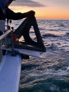 Already off the beach a good ways come daybreak, we dropped 24 blocks and a reef pyramid on a distant artificial reef – kept paddling.