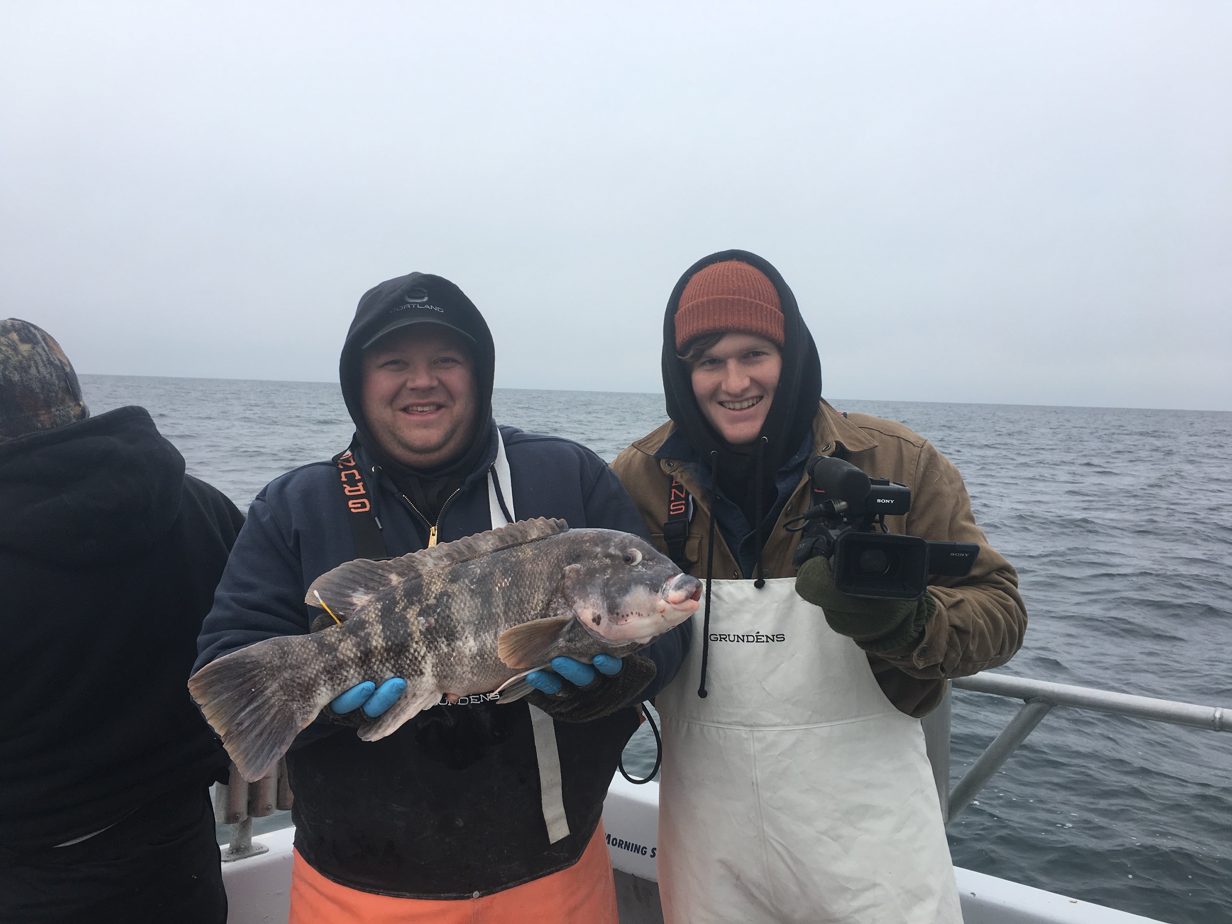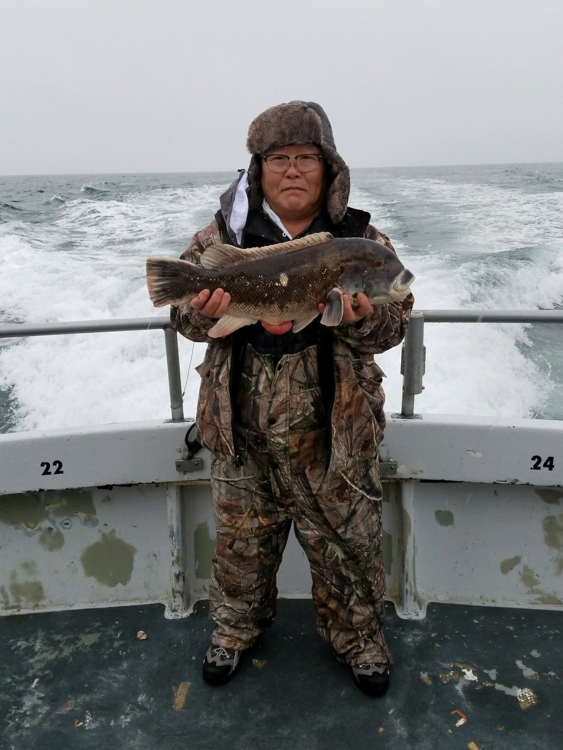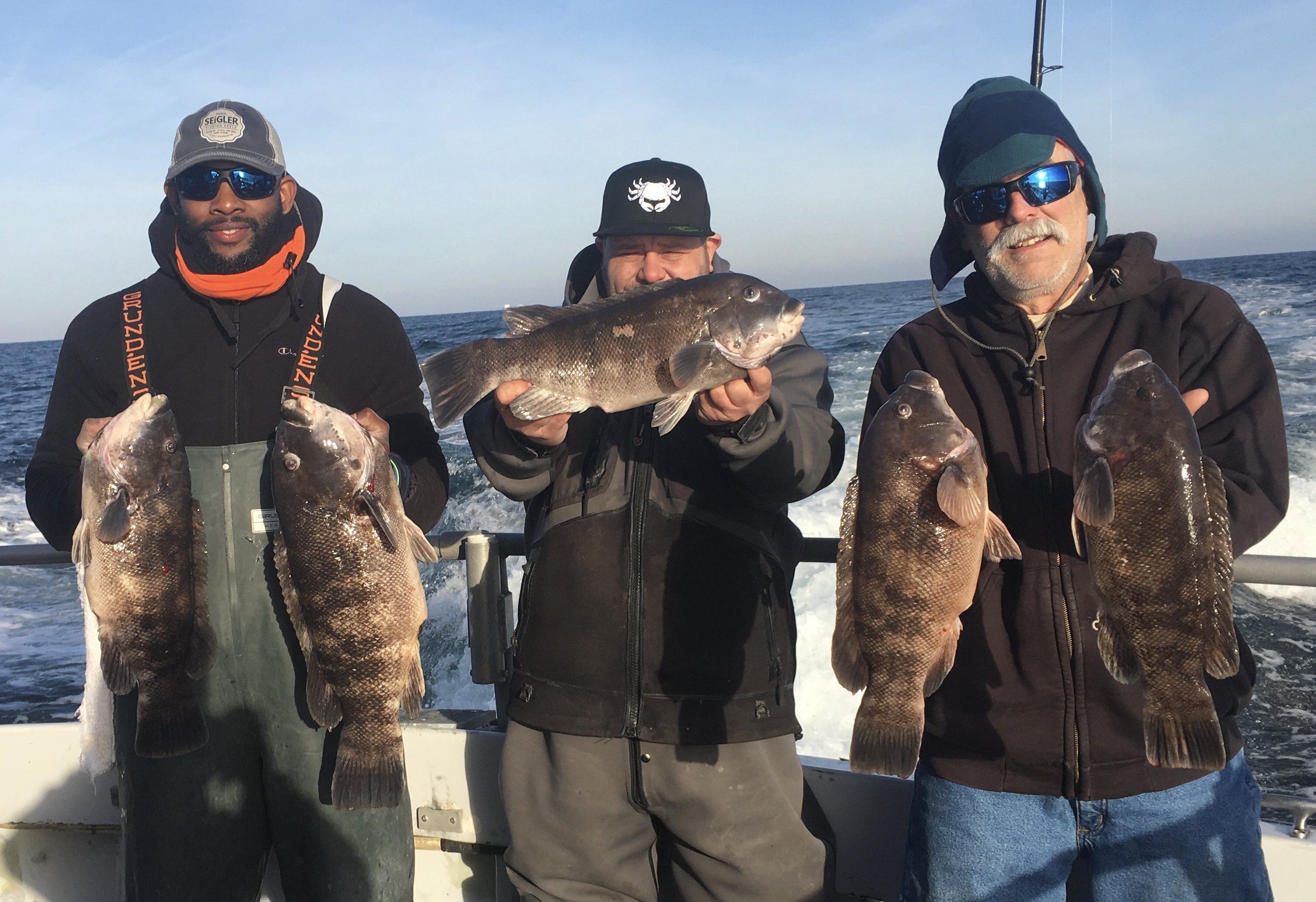 Garrett Weir of Brooklyn NY won the pool with a richly deserved 22.5 in 10 pound tog. Also pictured are Jimmy James of New Brunswick NJ – & Joe Zaccarelli of Springfield PA