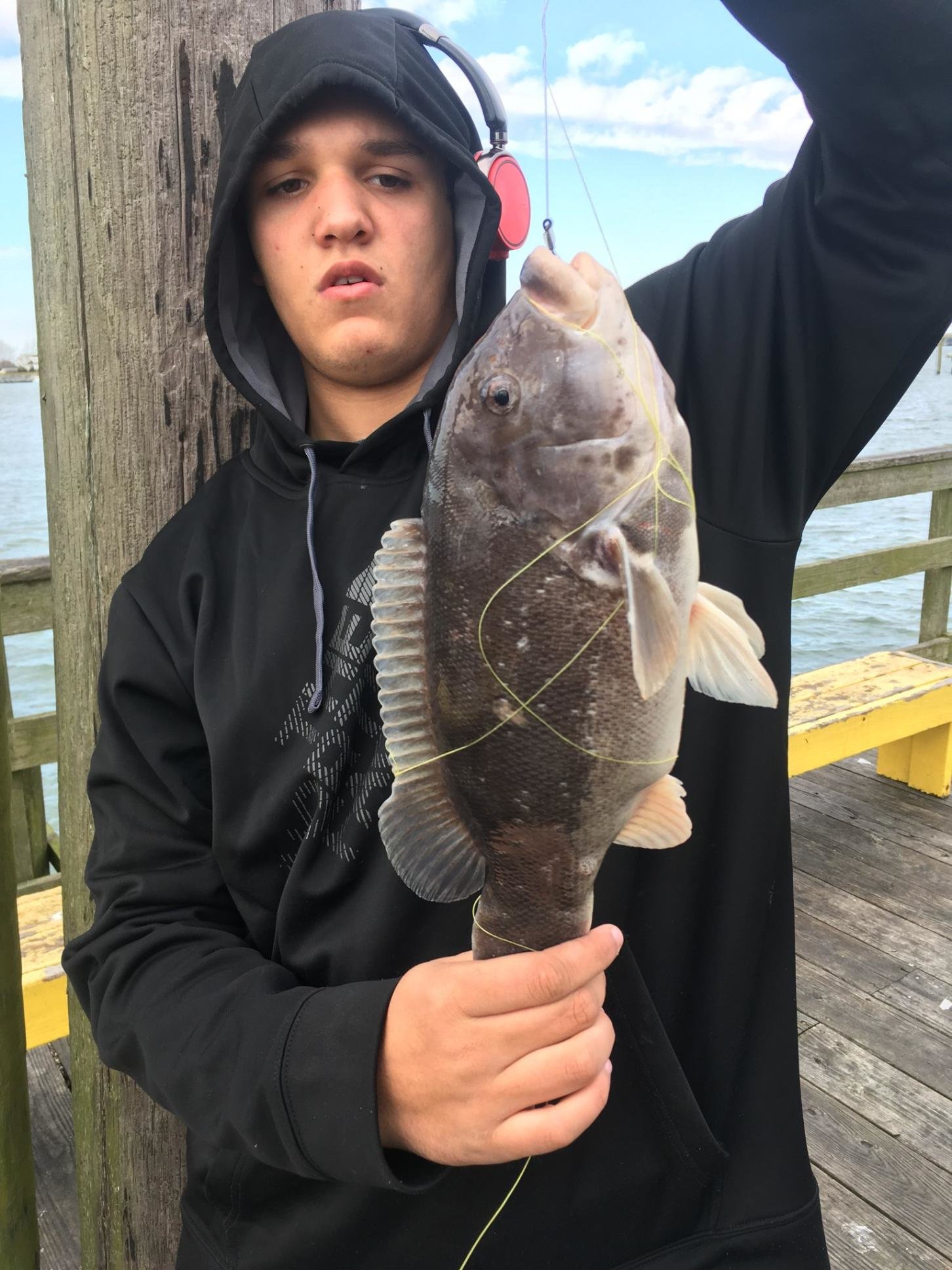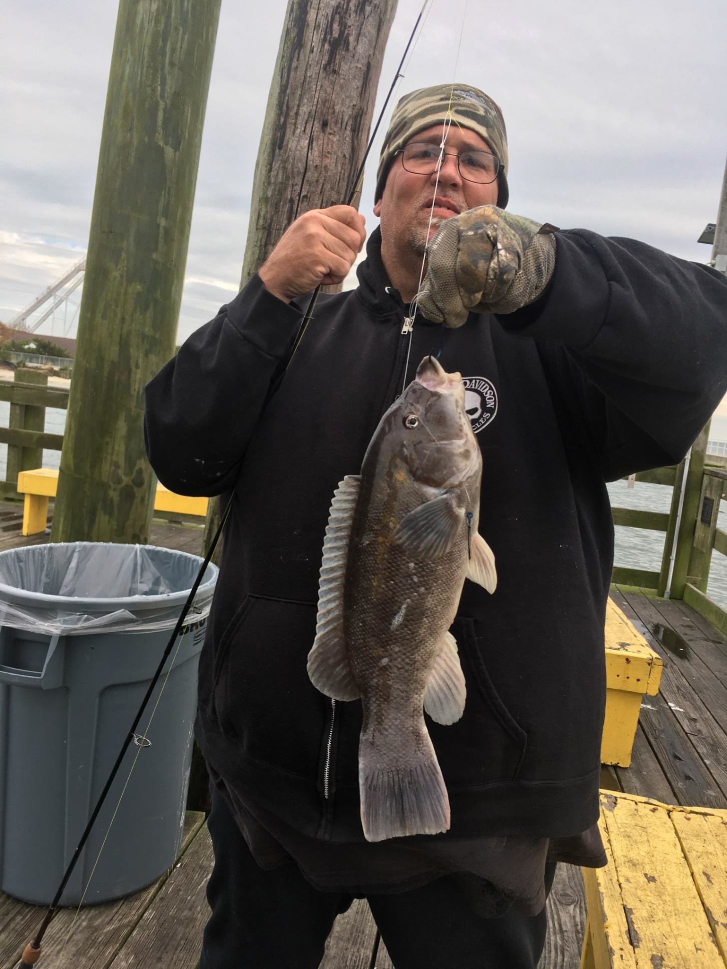 Bear from the Oceanic Pier in downtown Ocean City got to bend a rod himself this afternoon. Bear and his son Joshua caught a couple of keeper tautog from the pier and he also reported seeing some nice fish from the 2nd street bulkhead.