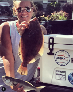 Kelly Bunting outfished her husband Tim today with a bluefish and a nice keeper flounder.