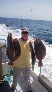 Anglers on board the Angler with Captain Chris Mizurak had a stellar day of bottom fishing today. There were several keeper flounder limits around the rail and some bonus mahi and triggerfish.
