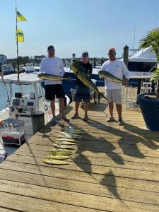 Travis Smith, his son Tyler and friend Brock Arentz of PA had 15 mahi with one big fish pushing 20 pounds. It took Tyler 45 minutes to land the big fish on 17 pound spinning gear.