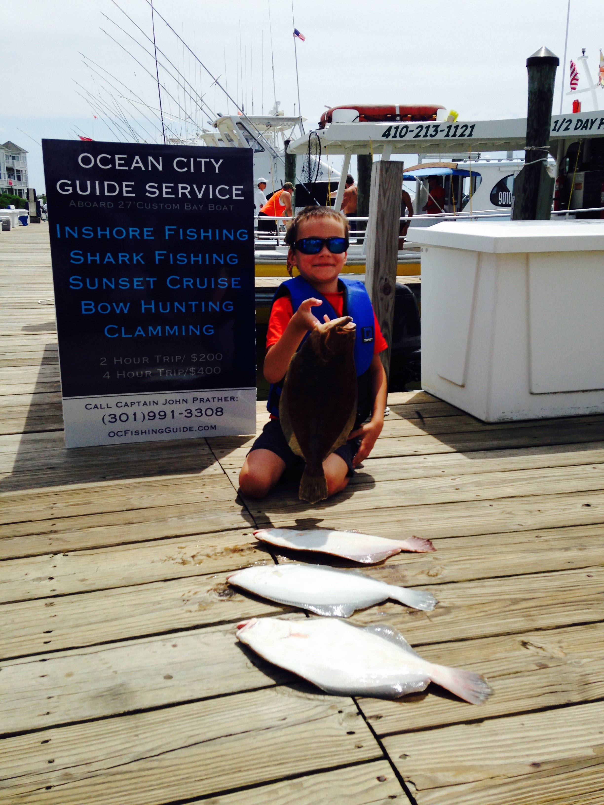The offshore fleet was at the dock today as boats were doing their last preparations for the start of The White Marlin Open, but Captain John Prather on the Ocean City Guide Service was up to his flounder killing ways again. Captain John had two trips today on inshore wrecks that produced several throwback flounder and some keepers. One trip had seven keepers and another had this little guy with four keepers. There are a lot of throwbacks in the bay, but if you want to get on more keepers the wreck fishing is the way to go. Captain John on OC Guide Service has got it down.