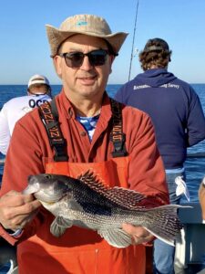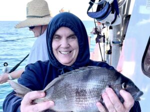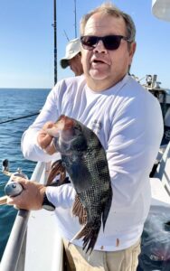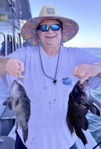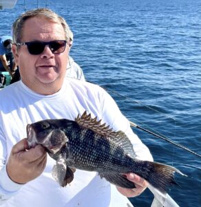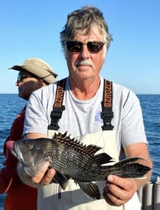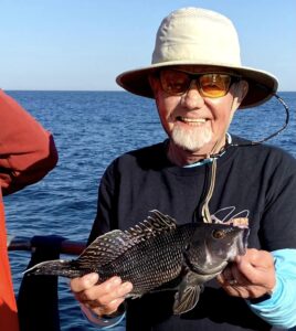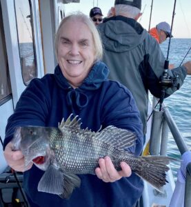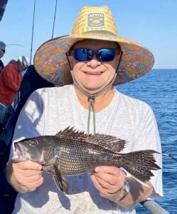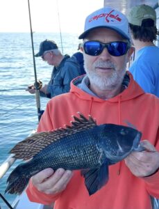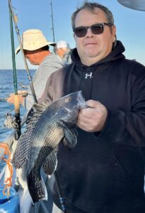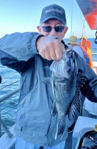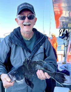 Captain Monty Hawkins of the Morning Star found a flat calm ocean this morning, but tough fishing. It picked up nicely and folks caught some big sea bass.