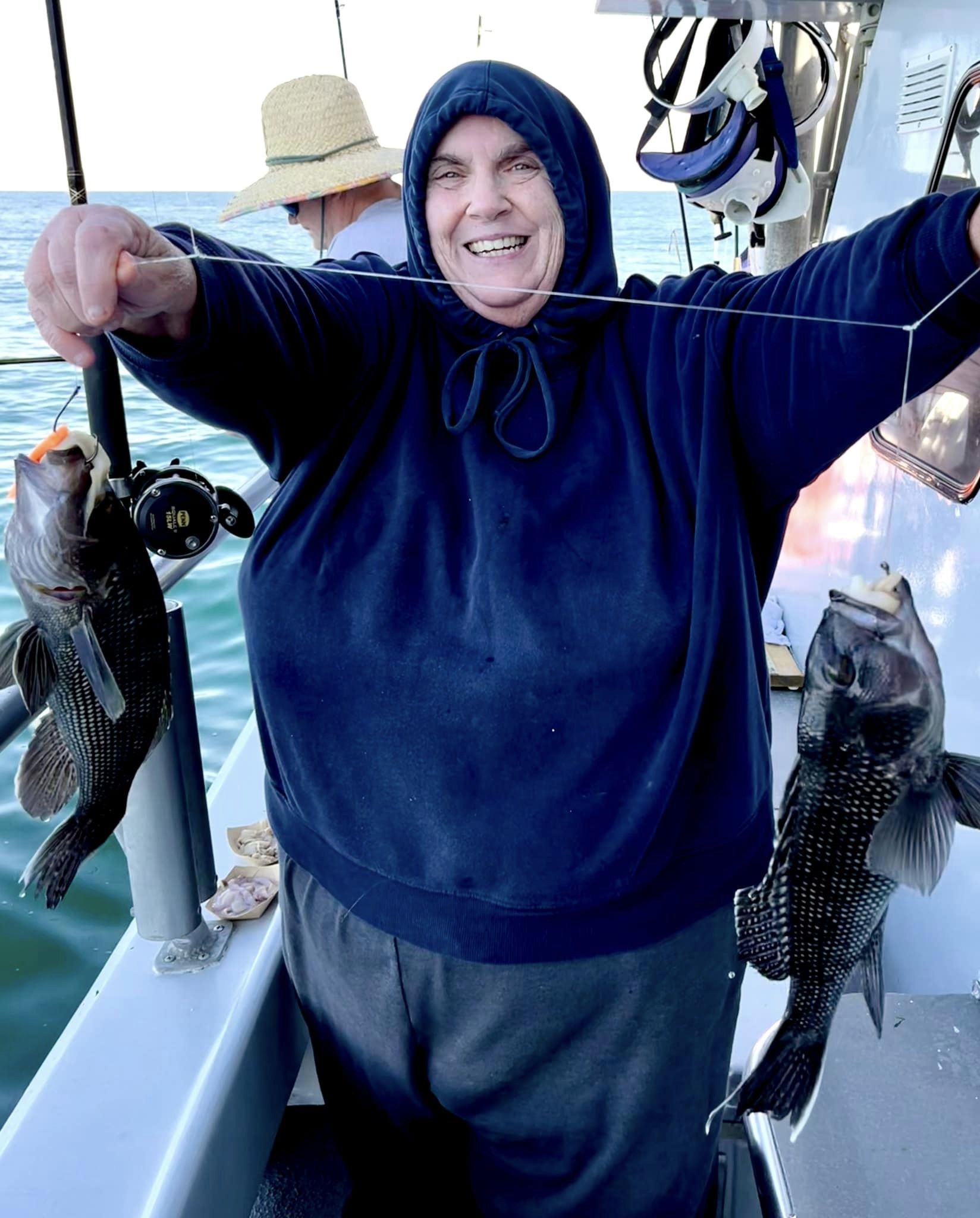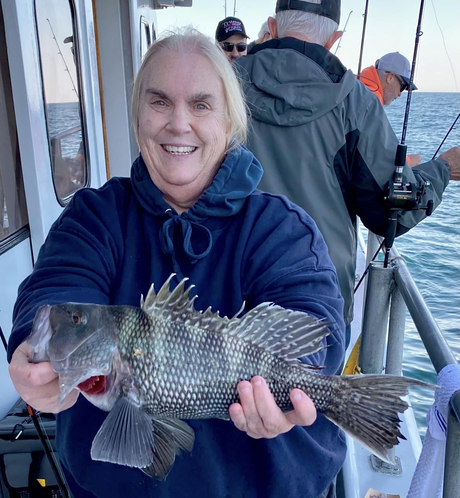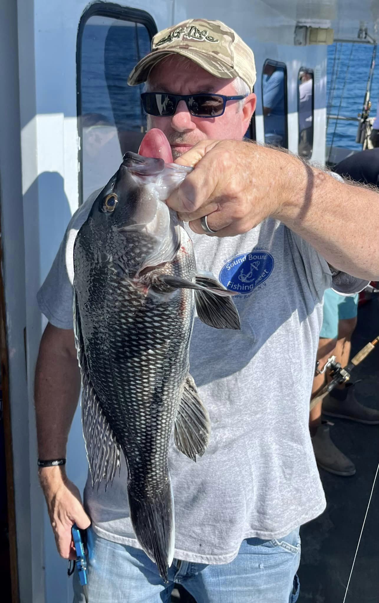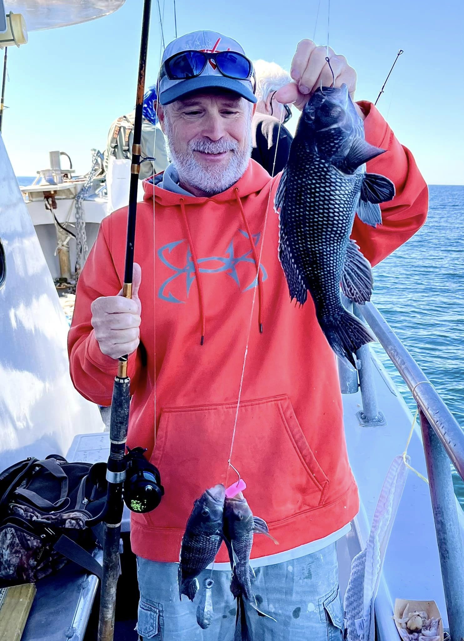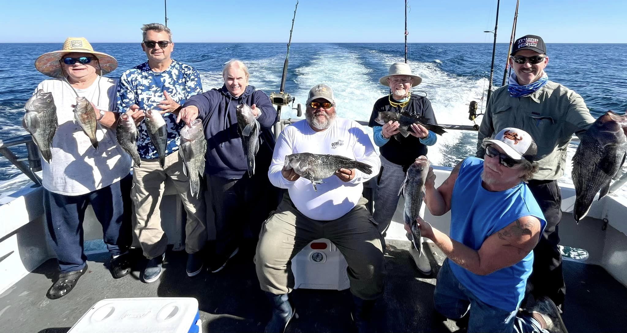 Captain Monty Hawkins of the Morning Star found a flat calm ocean this morning, but tough fishing. It picked up nicely and folks caught some big sea bass.
