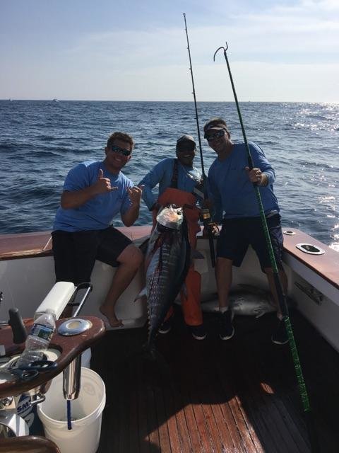 Captain Chris Miller on the Fishizzle put anglers Joe Ferguson and Matt Bahr on their first ever offshore fish. Joe and Matt caught an “under” bluefin and an “over” bluefin that weighed 90 pounds.