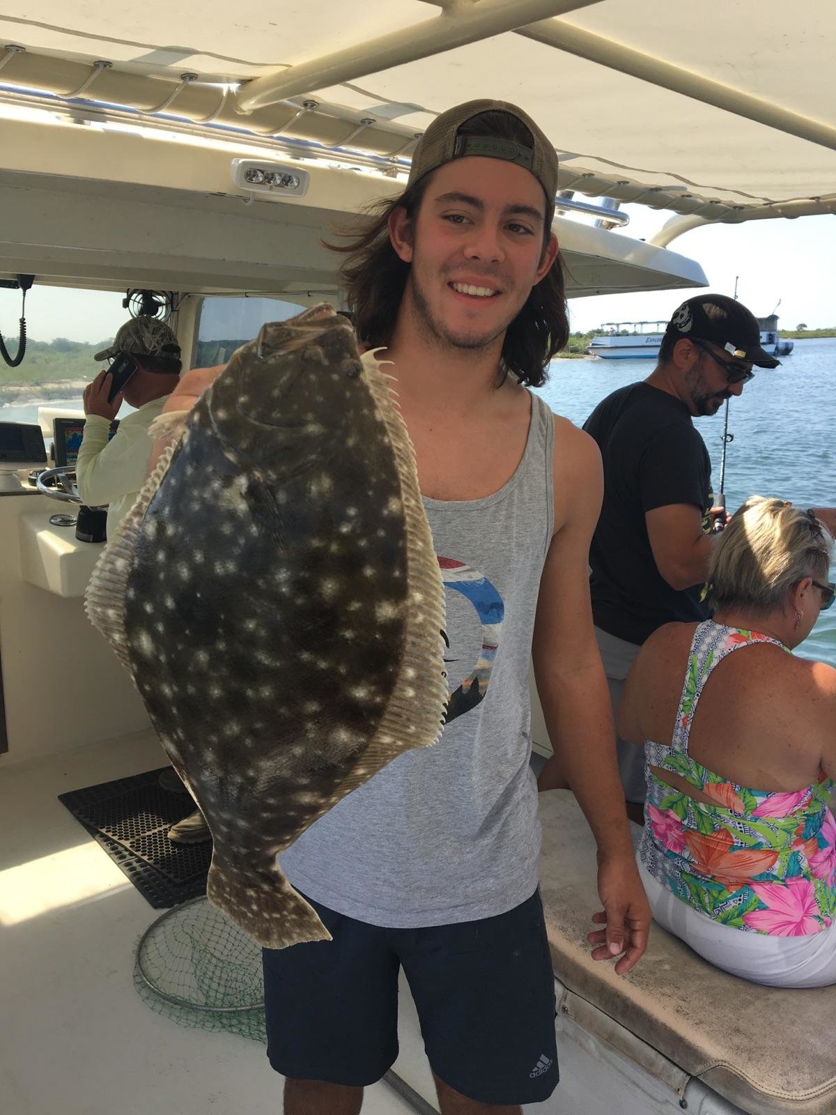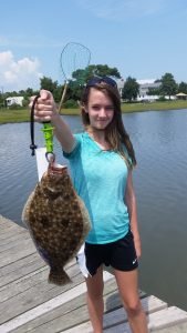 Savannah McCabe caught this 17 1/2″ flounder with Captain Brad McCabe of Bay Time Charters. The fish was caught in the center channel and was the lone keeper of 30 total fish.