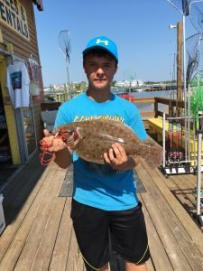 A keeper flounder also came over the railing of the Oceanic Pier in downtown Ocean City this morning when 16 year old Derek from Pennsylvania caught this fish on a live minnow.