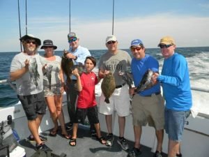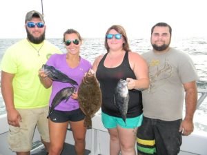 The inshore party boat fleet has had some good fishing on bottom structure the past few days with more and more flounder showing up and some still decent sea bass fishing. Captain Monty Hawkins had Clay Farrell and Tara Grover of Calvert County and Cassidy Rogers and Darin Doyle of Laurel, DE on board and put them on some nice fish. Cassidy had a 21″ flounder and all of the fish were caught on artificial reef with clam / cut bait.