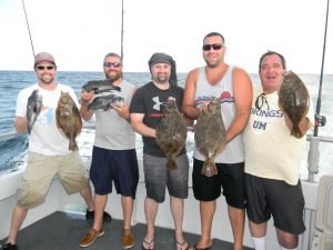 Captain Monty also had a bachelor party on board this week with Tim Marquez (the bachelor), Chad “The Hamburglar” Hamburg, Travis “the Cobra” Sobatta, Mat Pilotti and Ron Marquez. All of the guys caught plenty of fish for dinner and “the Hamburglar” had a nice 22.5″ flounder.