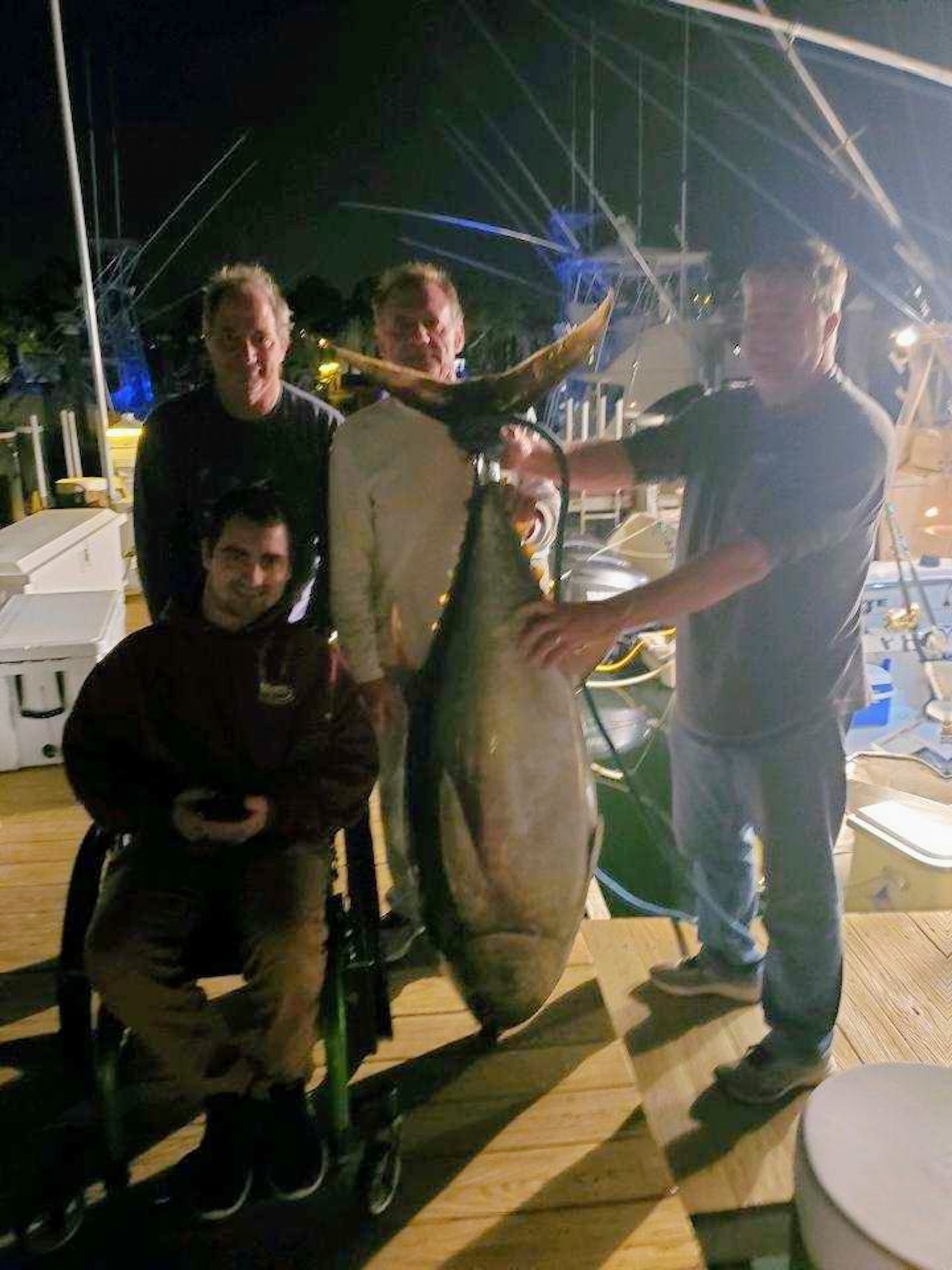 Chad Regner, Scott Regner, Michael Lutz and Bill Hubbard were fishing on board the private boat Second Chance back on November 5 when they landed this 62″ bigeye tuna while deep dropping for swordfish.