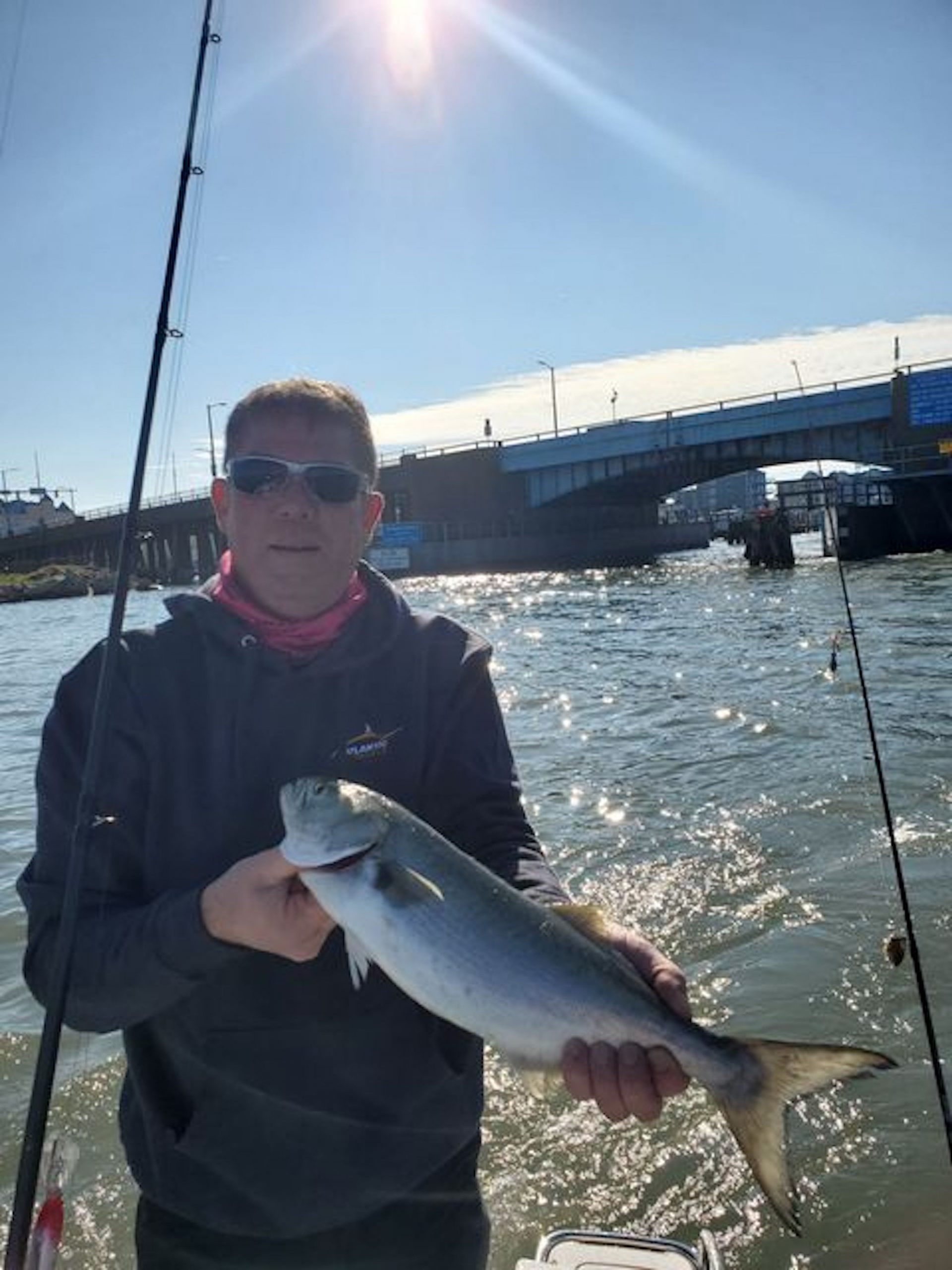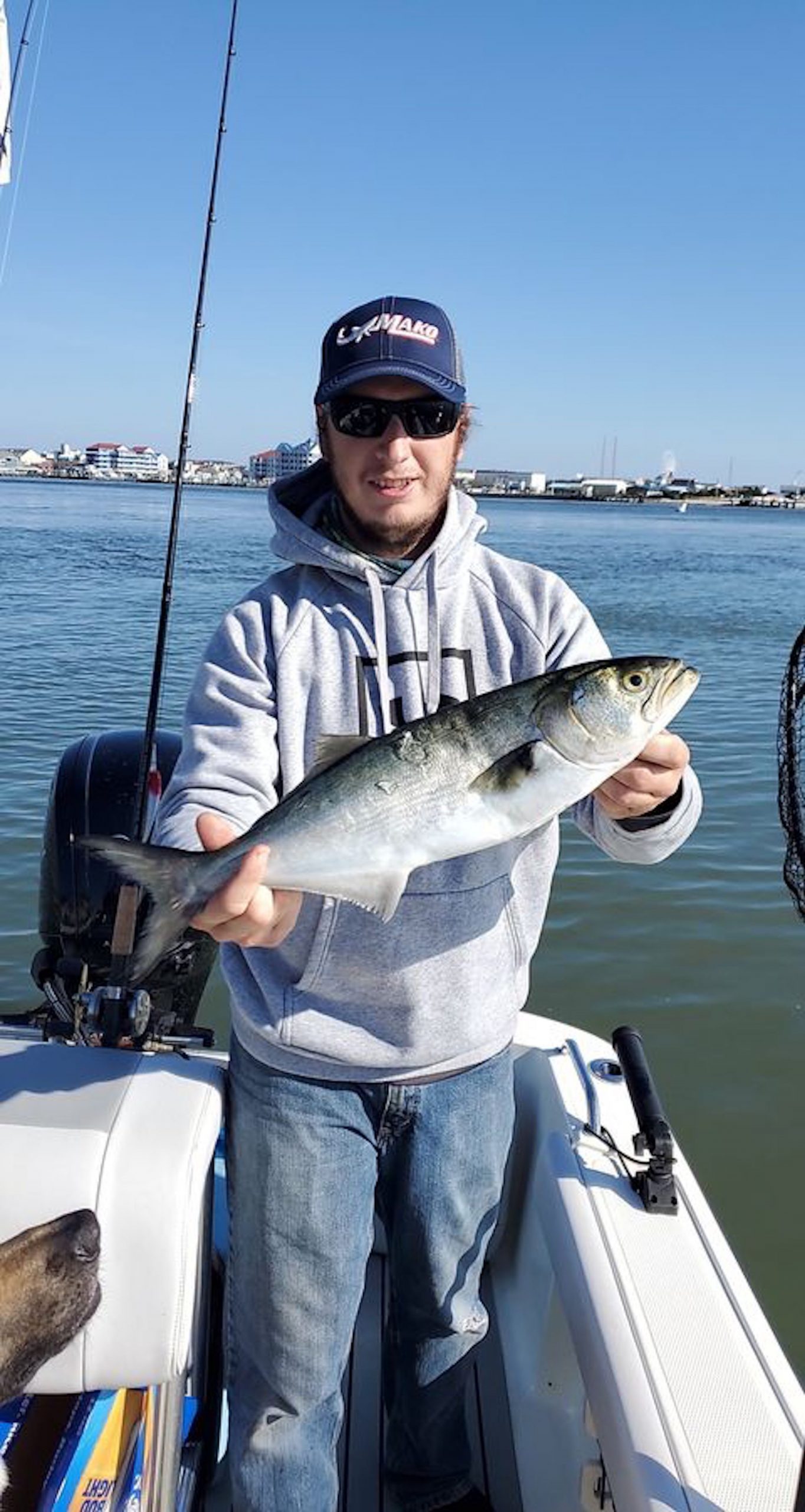 Jordan Helsel and Matt Winegardner are down fishing this weekend and had a good trip at the route 50 bridge and inlet. The guys caught some nice bluefish and tautog.