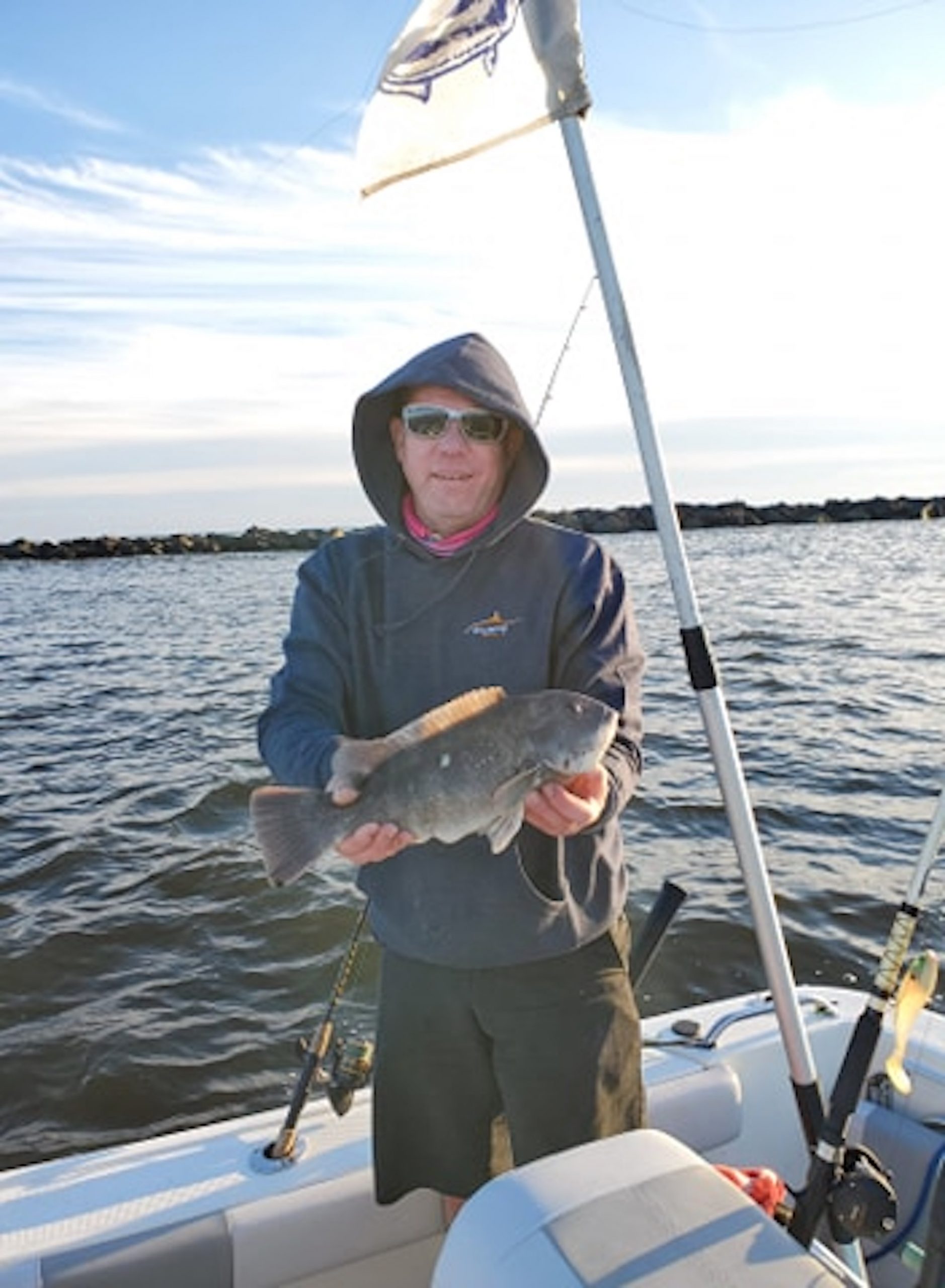 It was another nice fall day today with light winds and sunny skies, and though the temps weren’t what they have been the past week or so it was plenty warm to be out on the water enjoying the day. Ocean bottom fishing was a bit “rolly” today, but some fish still hit the deck and there are lots of fish in the bay right now including some red drum that showed back up for my man Big Bird Cropper and friends.