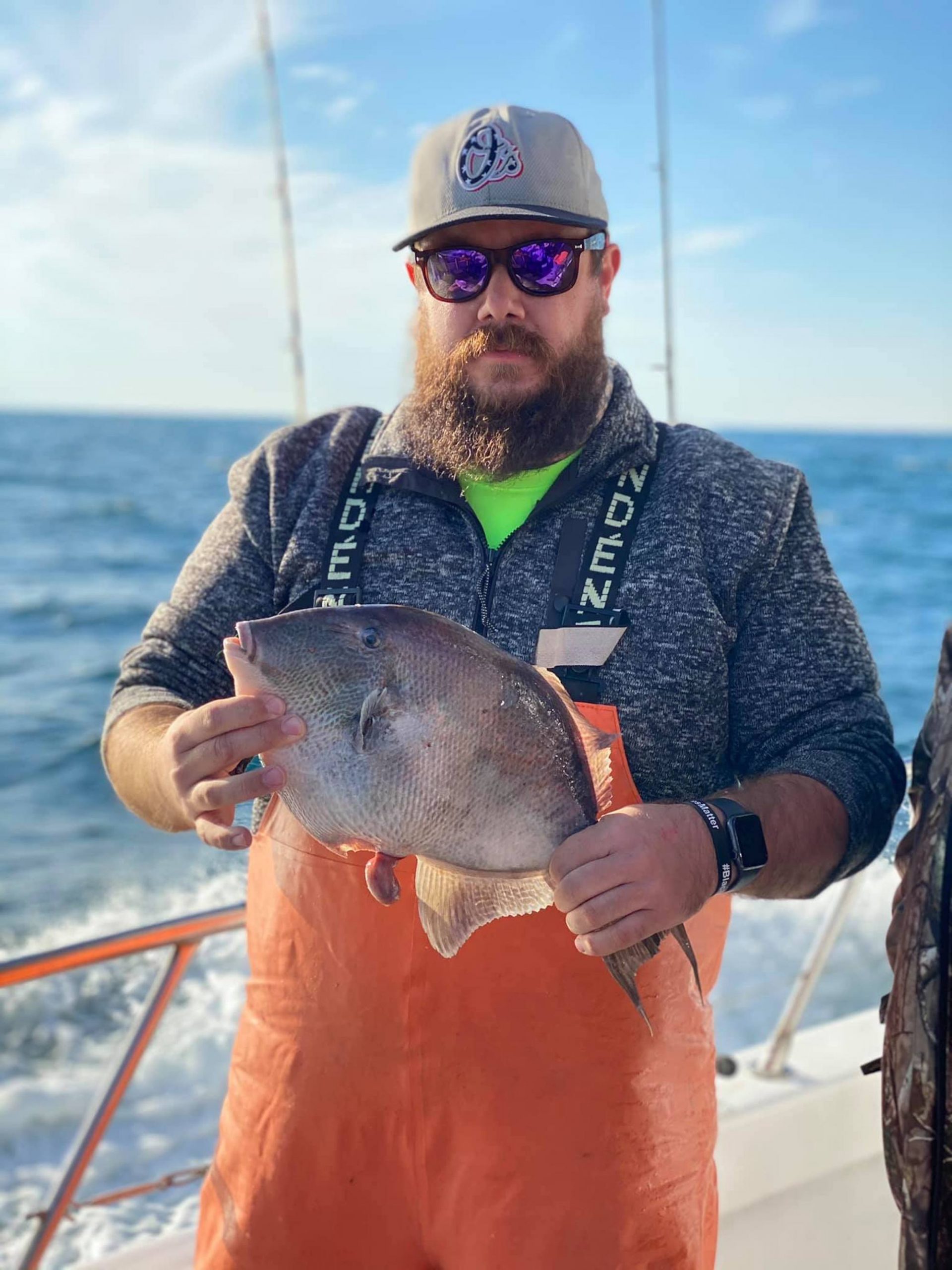 Captain Chris Mizurak of the Angler reported the “rolly” conditions off the beach today, but his anglers still did some damage on sea bass, some nice flounder and triggerfish.