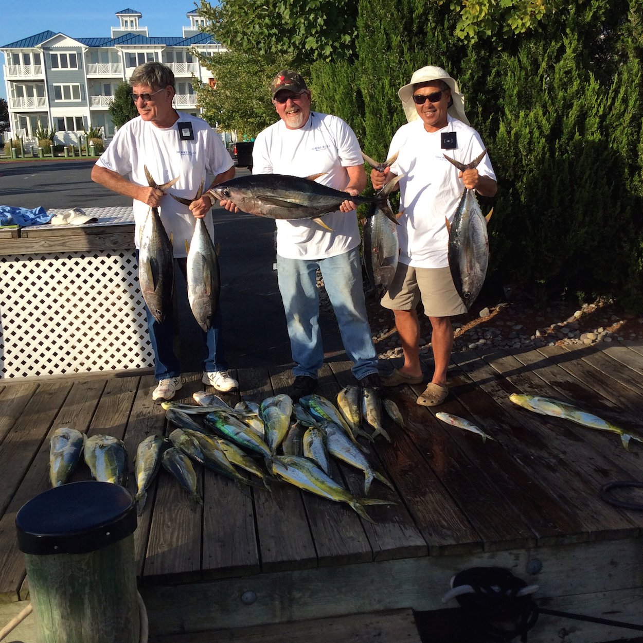 Well not only is the white marlin fishing good and the mahi fishing excellent, now we can add tuna back into the conversation. Mid to late September is when we start to see another run of yellowfin tuna action with a few bigeye and long fin albacore mixed in. There was a decent bite overnight in the Washington Canyon last night so today some of the fleet started there to see what it was all about, while others headed to the Poor Man’s where the mahi action has been nothing short of spectacular.
