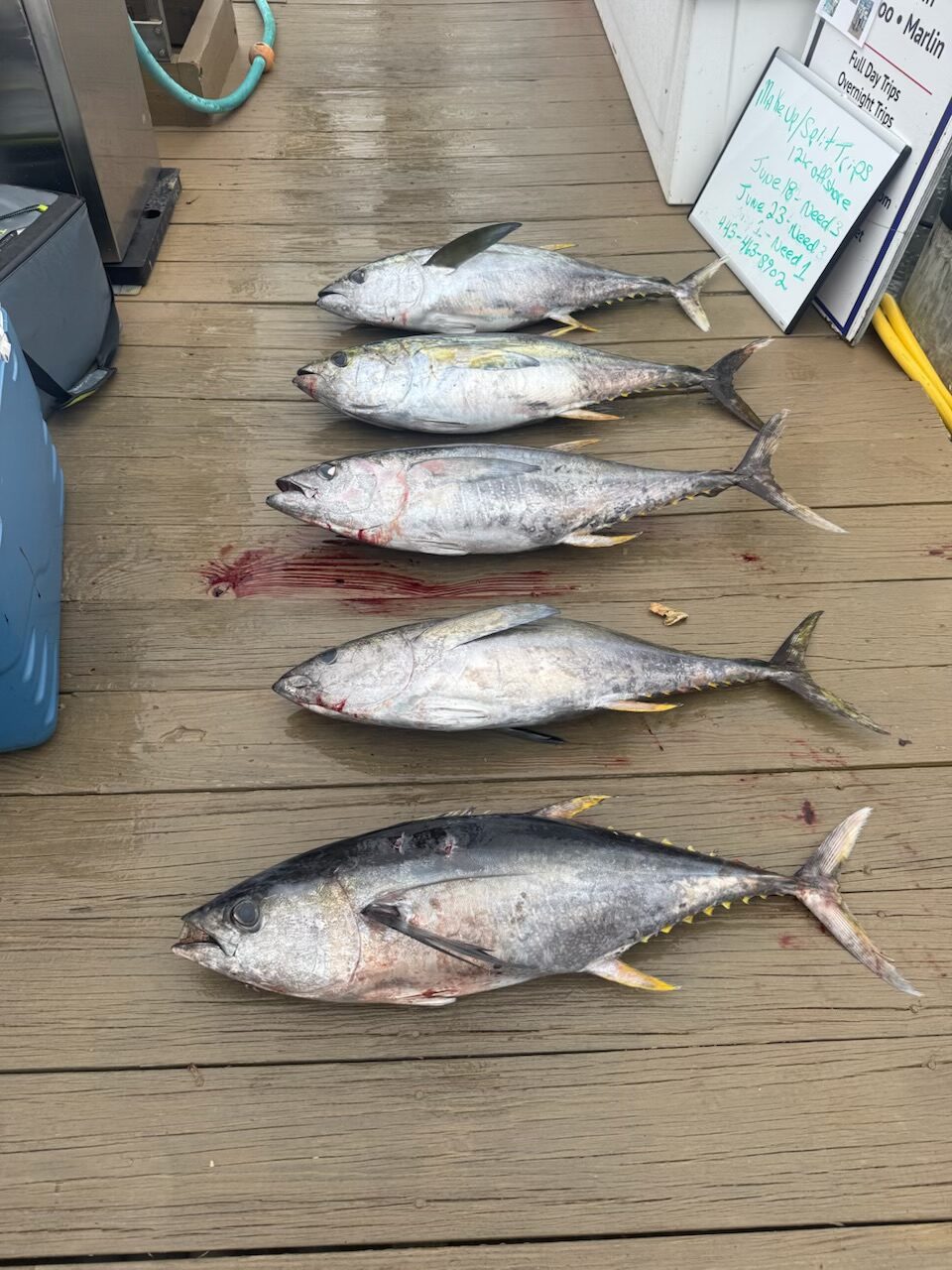 Captain Dale Lisi of the Foolish Pleasures had a great day in the canyons today as well putting nine quality yellowfins on the dock at Bahia Marina.