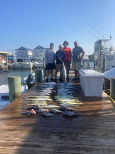 The crew of Foolish Pleasures with Captain Dale Lisi had a nice day in the Washington Canyon today with a 50 pound yellowfin and a limit of mahi. Yesterday it was tuna, tilefish and sea bass.