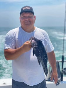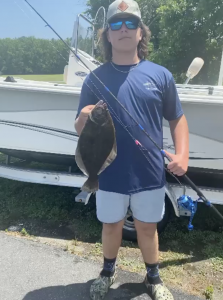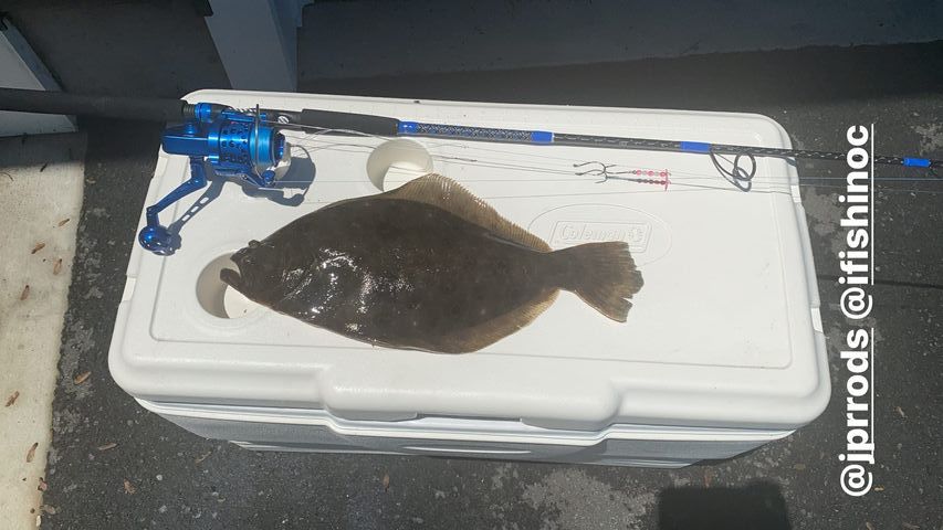 Owen West used our Fish in OC Dale Timmons’ Deadly Double and some pink Gulp to land a few throwback flounder and this 18″ keeper while fishing with his Pop this morning. Owen wrangled the fish on his new custom JPR Rod.