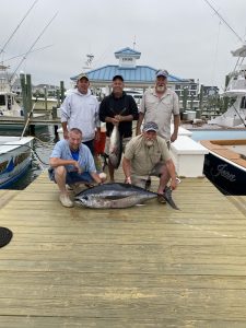 Captain Mike Burt of Pumpin’ Hard put his crew on a couple of fish today including a nice sized “eyeball” (bigeye tuna).