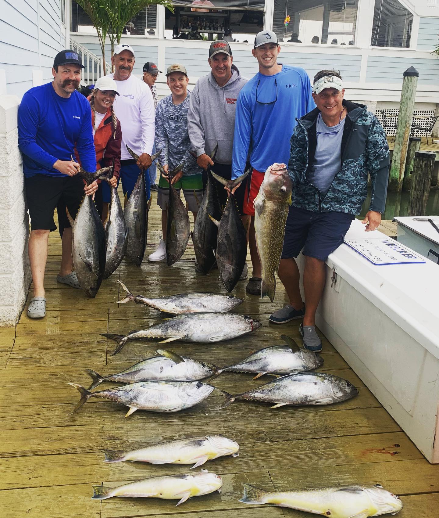 Captain Jeremy Blunt and the crew of the Wrecker had a crazy good day trolling and deep dropping the canyons today putting 12 yellowfin tuna and some nice golden tilefish in the fish box.