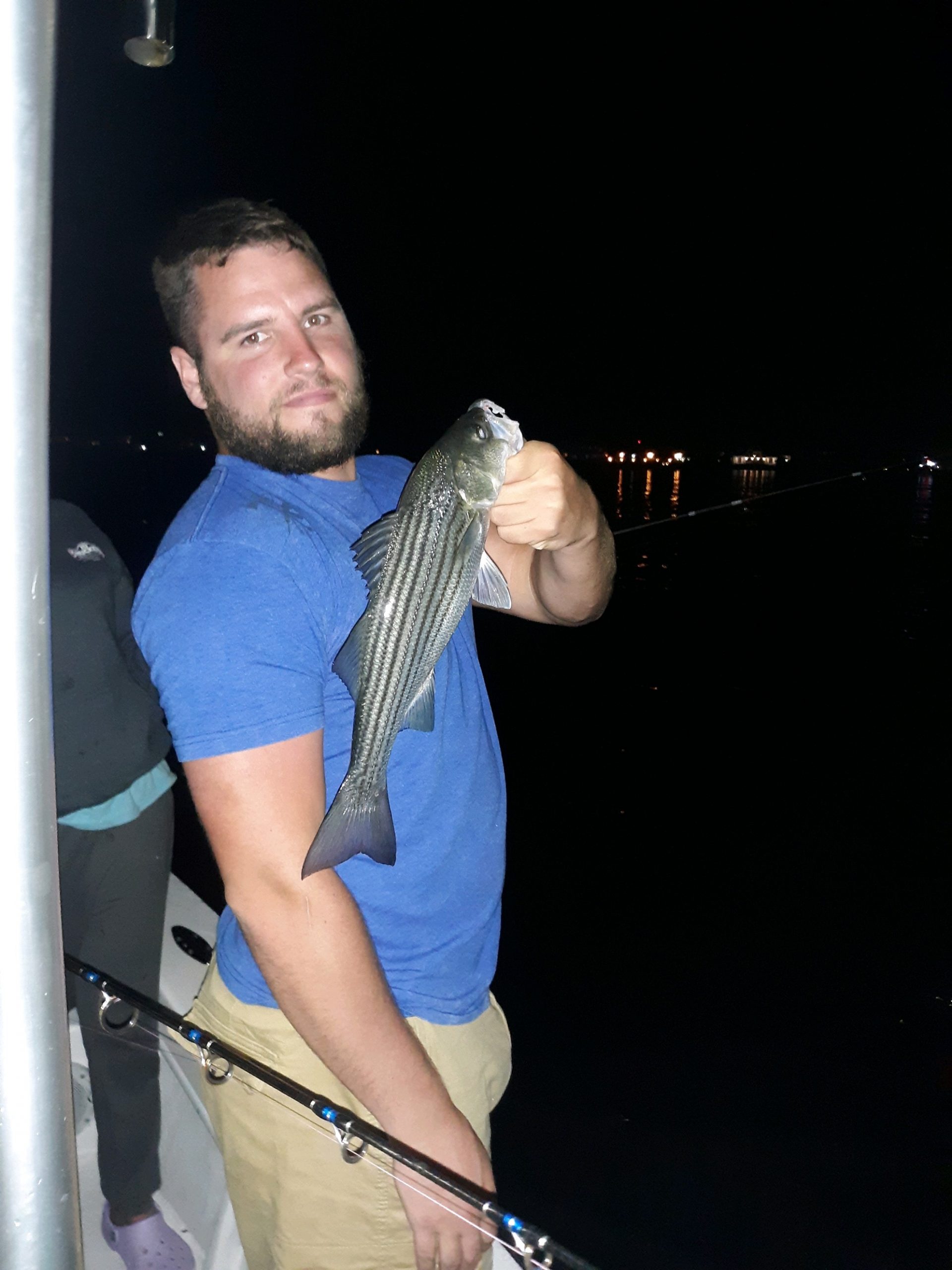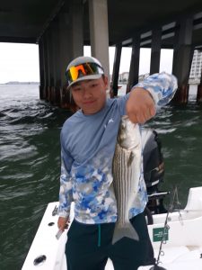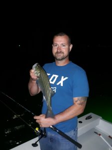 Rockfish are still snapping well at the route 50 bridge on the moving tide and Captain Wayne Blanks of Bayside Guide Service found some last night and today for his anglers.