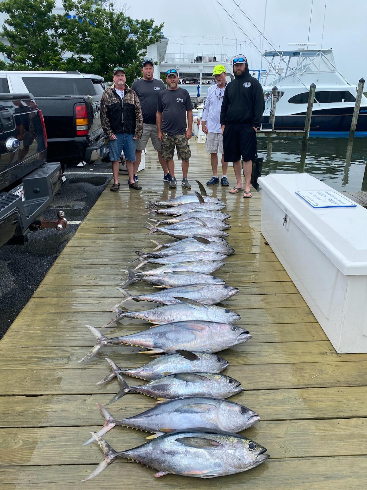 Captain Mark Hoos of the MARLI has been the Ocean City Marlin Club top tuna catching charter boat for over 17 years and today he put a bunch on the board to repeat in 2021.  Captain Mark showed his anglers some crazy good fishing with 18 yellowfin tuna and a nice mahi for the fish box.