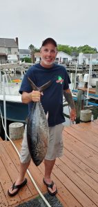 Owen M. was fishing out of Sunset Marina in West Ocean City when he landed this nice yellowfin tuna.