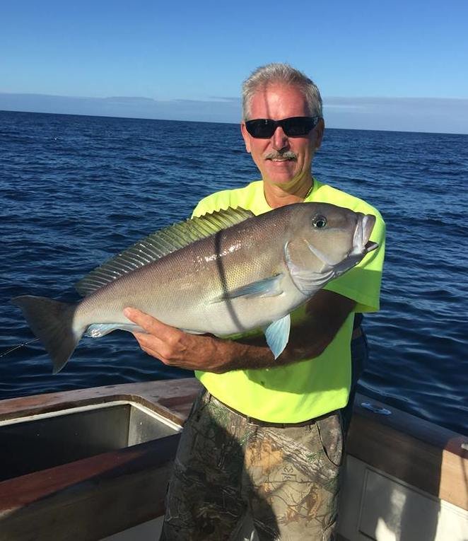 Another really calm day and another boat takes a trip to deep drop the canyons.  Today it was the Boss Hogg out of Sunset Marina with Captain Chris Ireland.  Captain Chris took his crew to the Poor Man’s Canyon where they caught 40 tilefish, 40 sea bass and three mahi.  The mahi were a pleasant surprise as there aren’t usually a lot of them out there this late in the season.